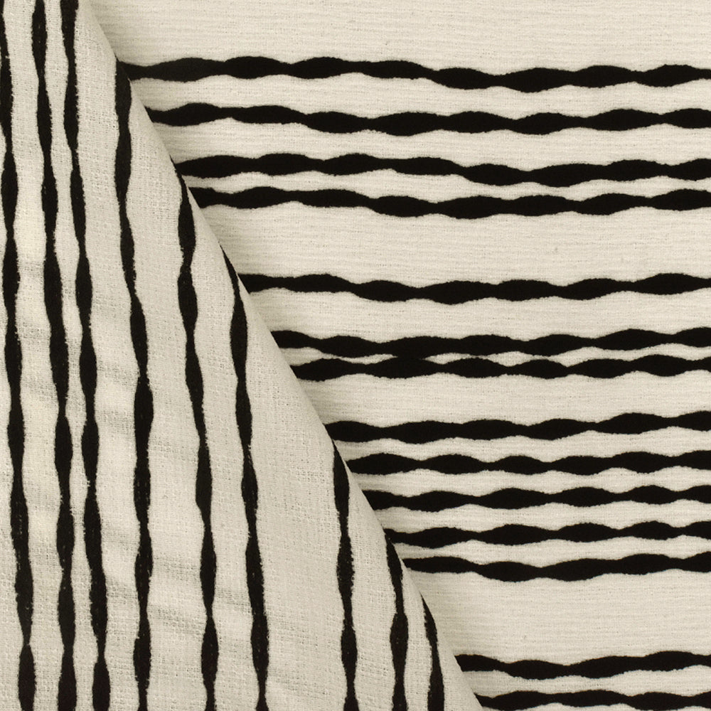 Ivory-Black Bump Stripe Printed Striated Texture Crepe Fabric