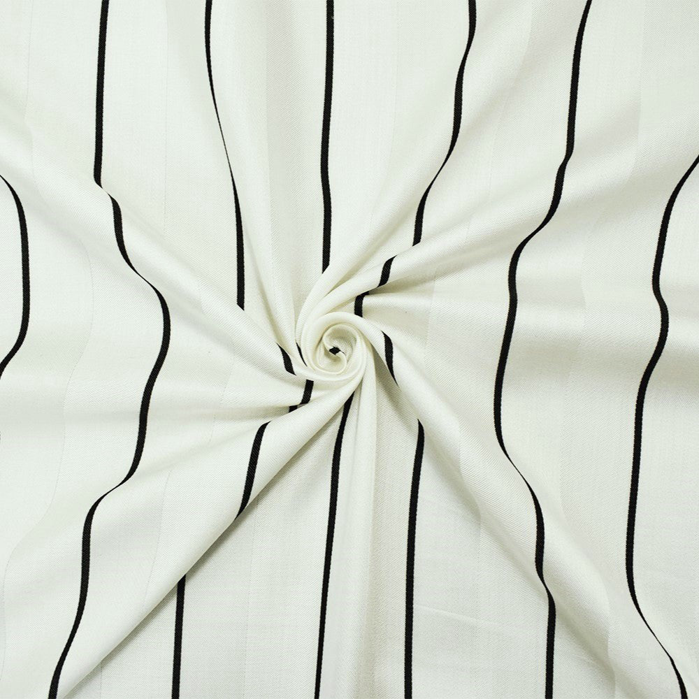 Ivory-Black Rayon-Cotton Famous Maker Vertical Stripe Woven Suiting Fabric