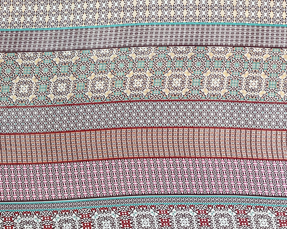 Red-Pink-Multi Poly Stripe Aztec Printed Chiffon Woven Fabric