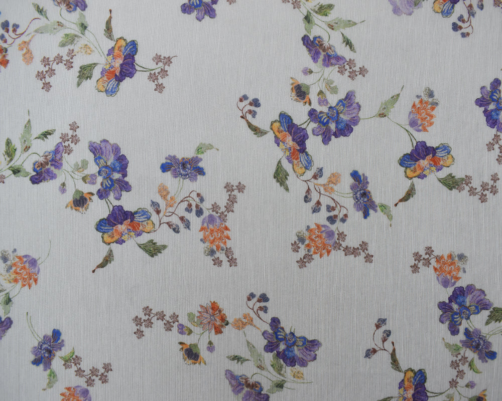 White-Purple-Multi Poly Floral Printed Dobby Chiffon Woven Fabric