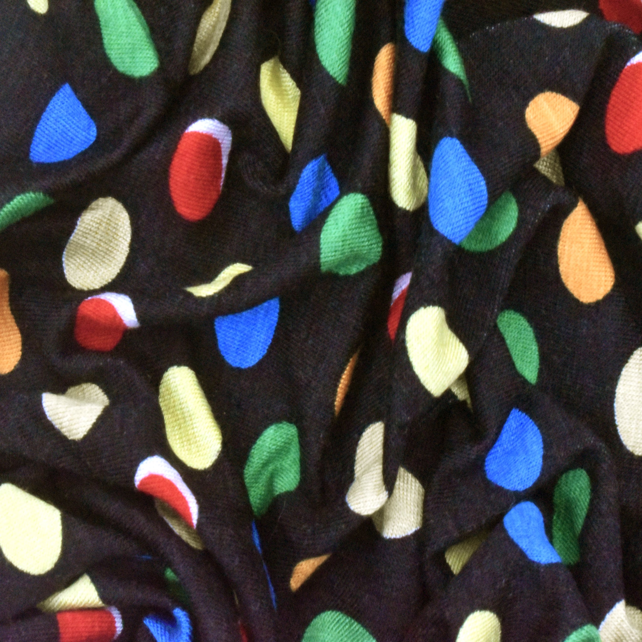 2 1/2 YD PC-Pitch Black-Multi Dot Printed Stretch Jersey Knit Fabric
