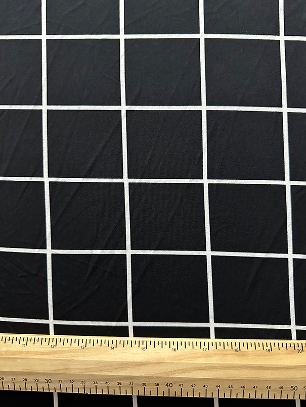 2 1/2 YD PC-White and Black Windowpane Check ITY Jersey Knit Fabric
