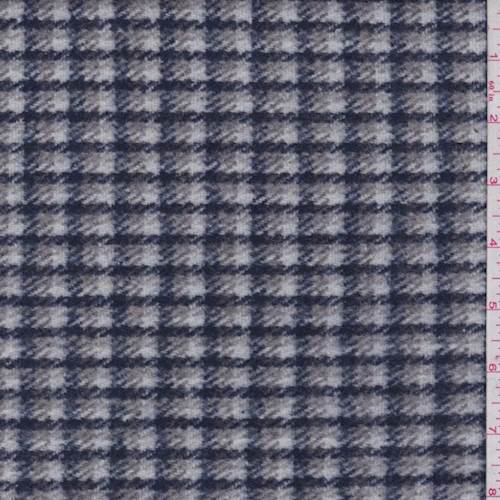 2 1/2 YD PC-White/Navy/Grey Check Wool Blend Coating Fabric