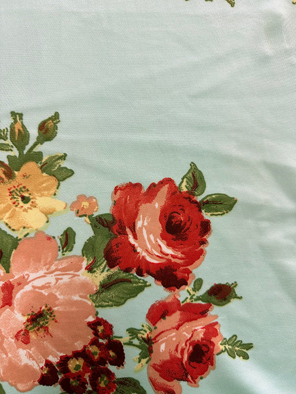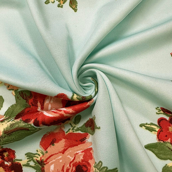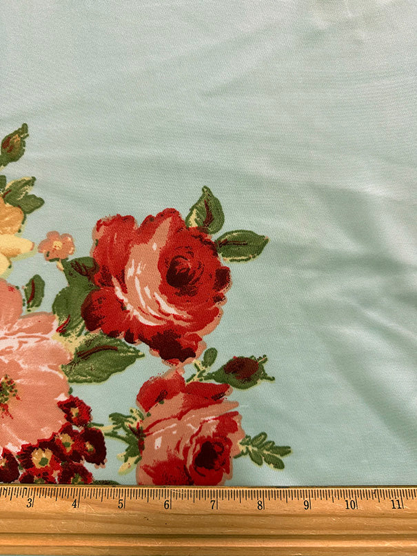 4 3/8 YD PC-Mint Green Multi Floral Print Scuba Knit Fabric