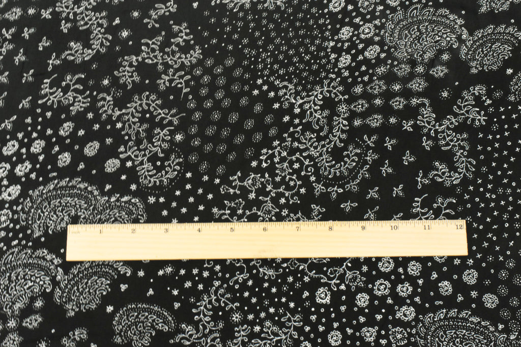4 YD PC-Black-Ivory Famous Designer Rayon Fancy Paisley Printed Chiffon Fabric