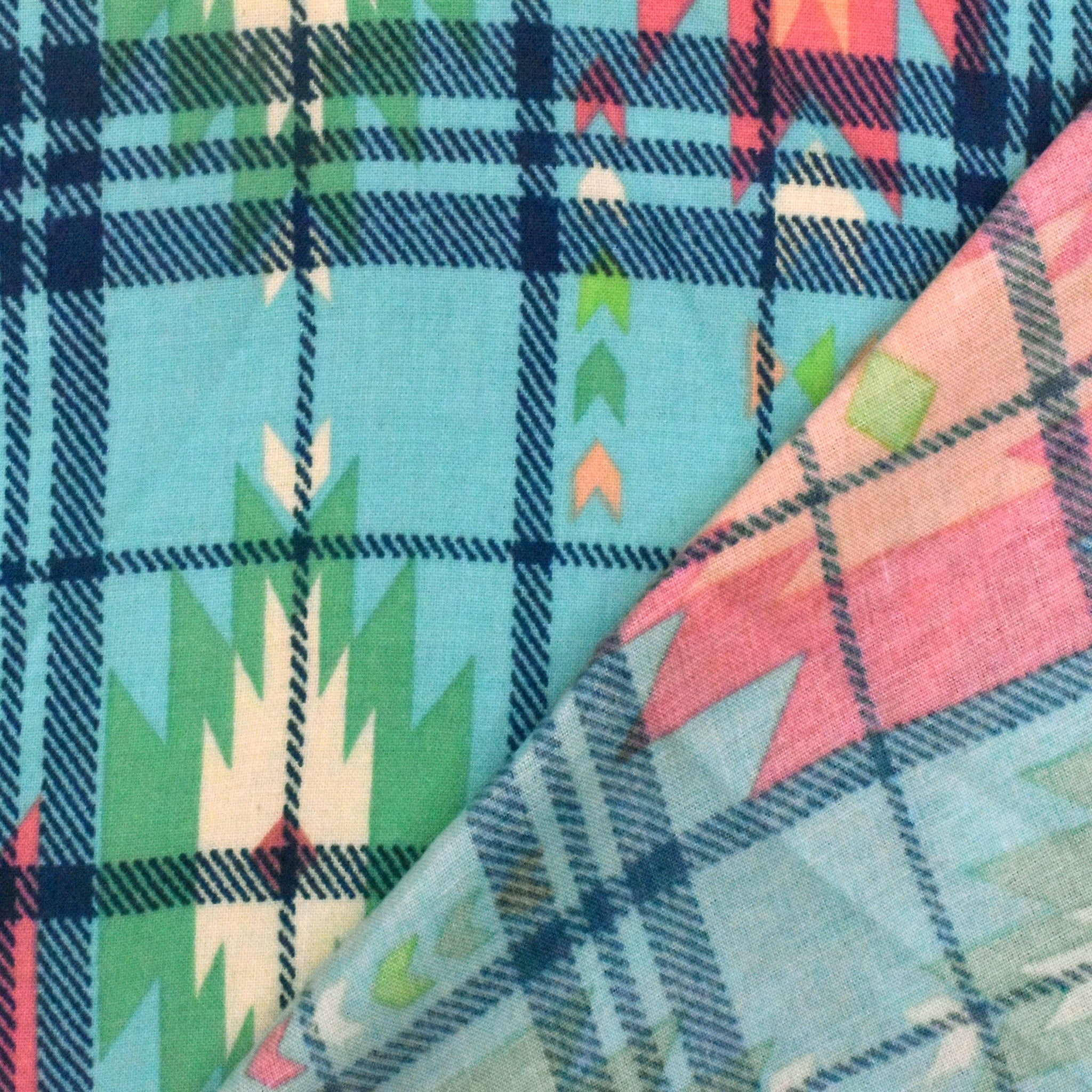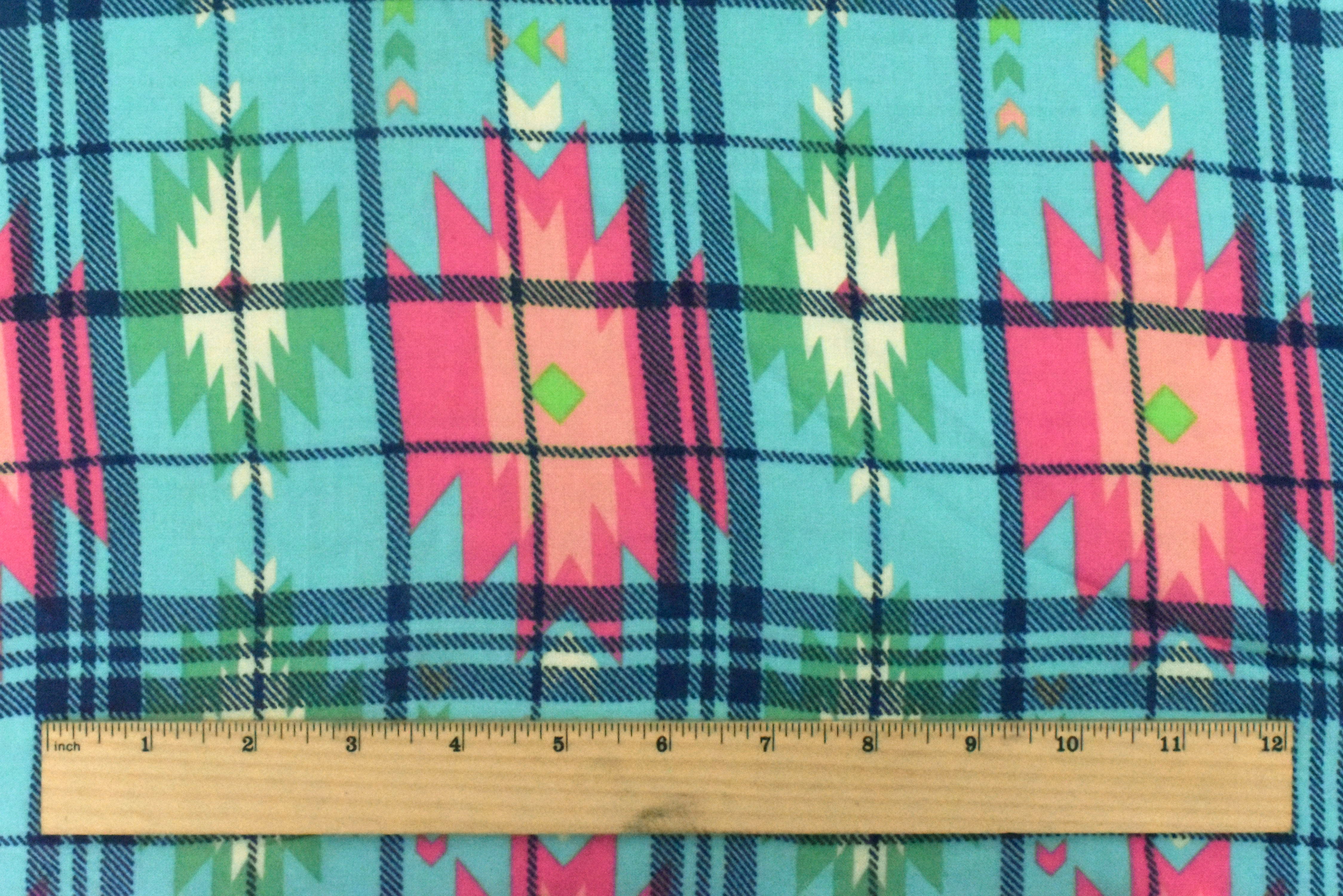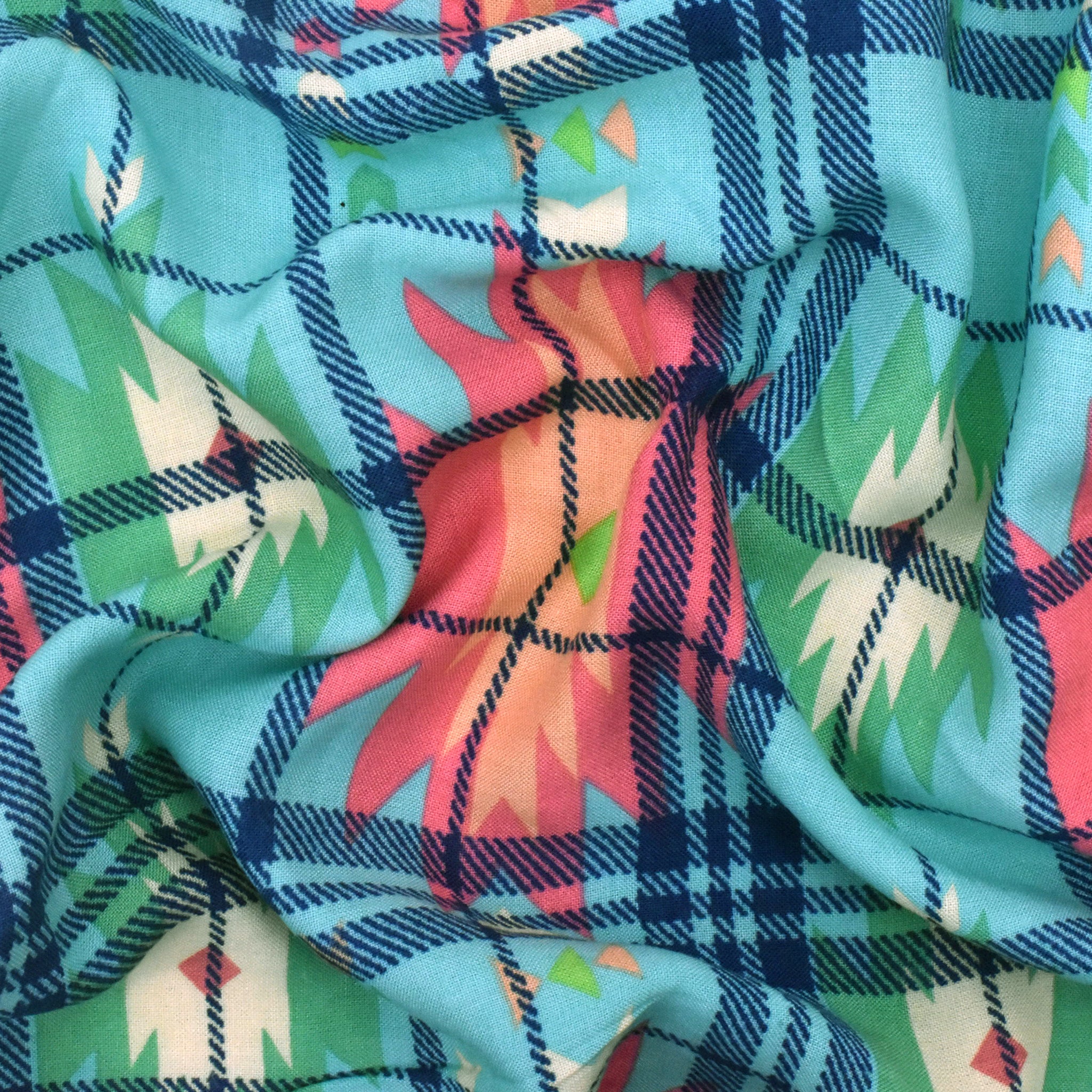 Aqua Teal-Multi Aztec Plaid Printed Challis Fabric