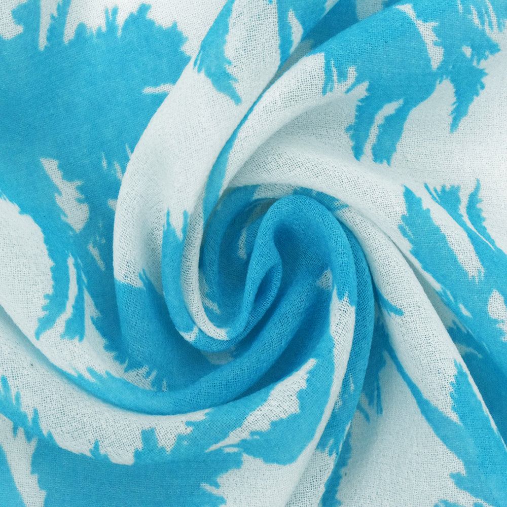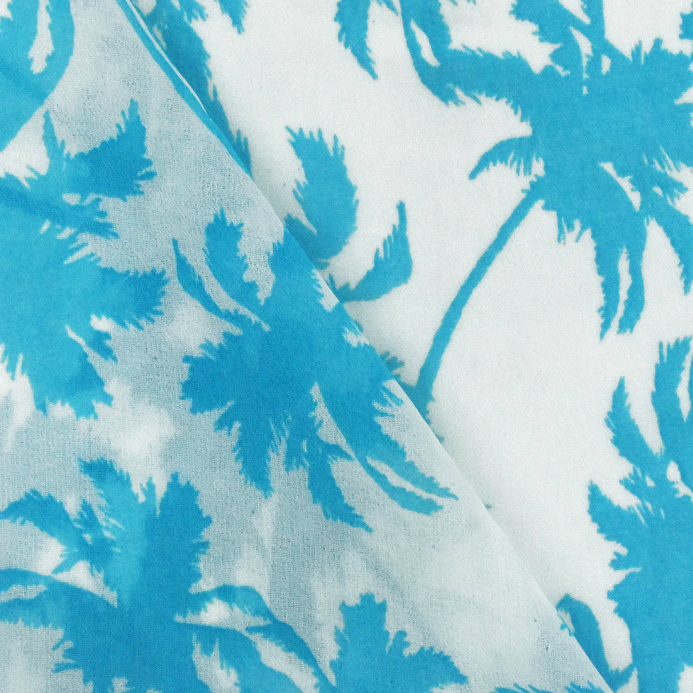 Aquatic Teal-Ivory Palm Tree Printed Crepe Chiffon Fabric