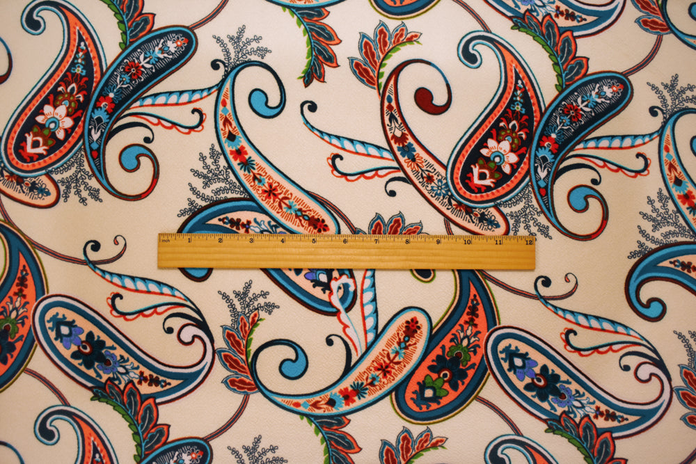 Beige-Multi Poly Paisley Print Stretch Spandex Liverpool Double Knit Fabric
