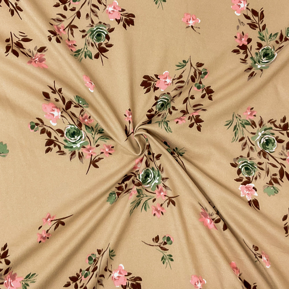 Beige-Multi Poly Spandex Stretch Floral Print Brushed Jersey Knit Fabric