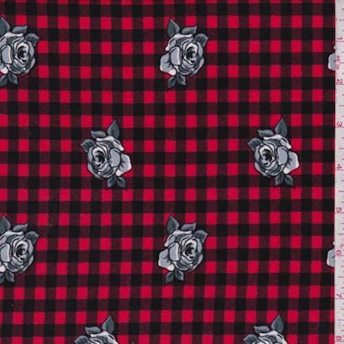 Berry Red/Black Floral Check Double Brushed Jersey Knit Fabric