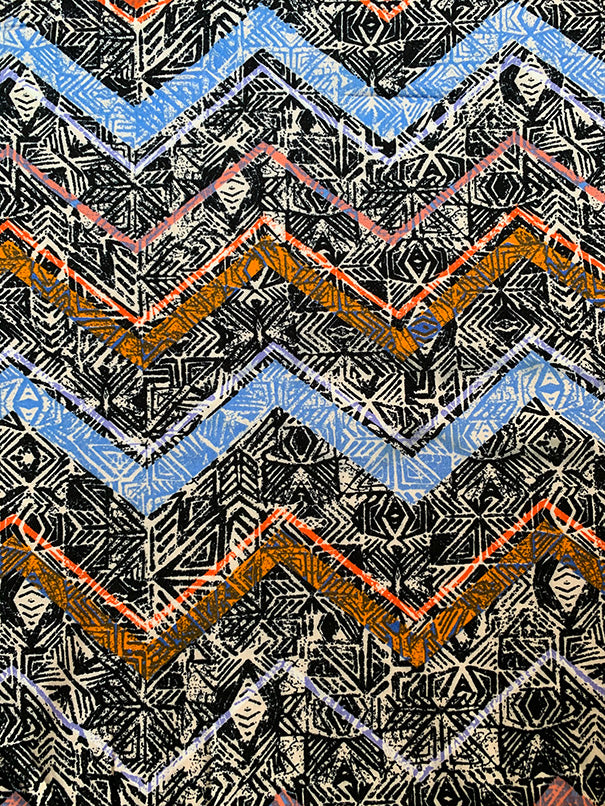 Black and Gray Aztec Multi Print Rayon Challis Fabric
