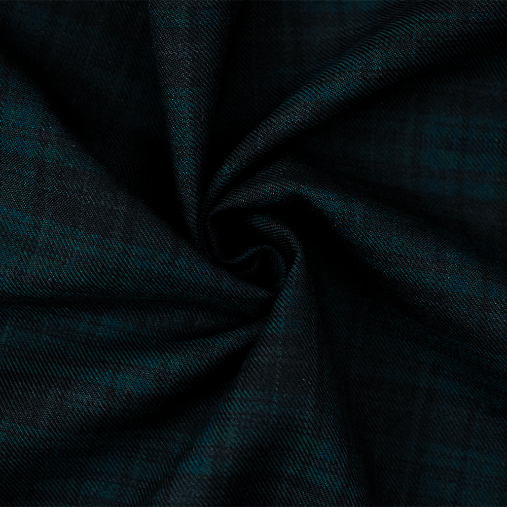 Black-Blue Wool-Polyester Plaid Twill Suiting Woven Fabric