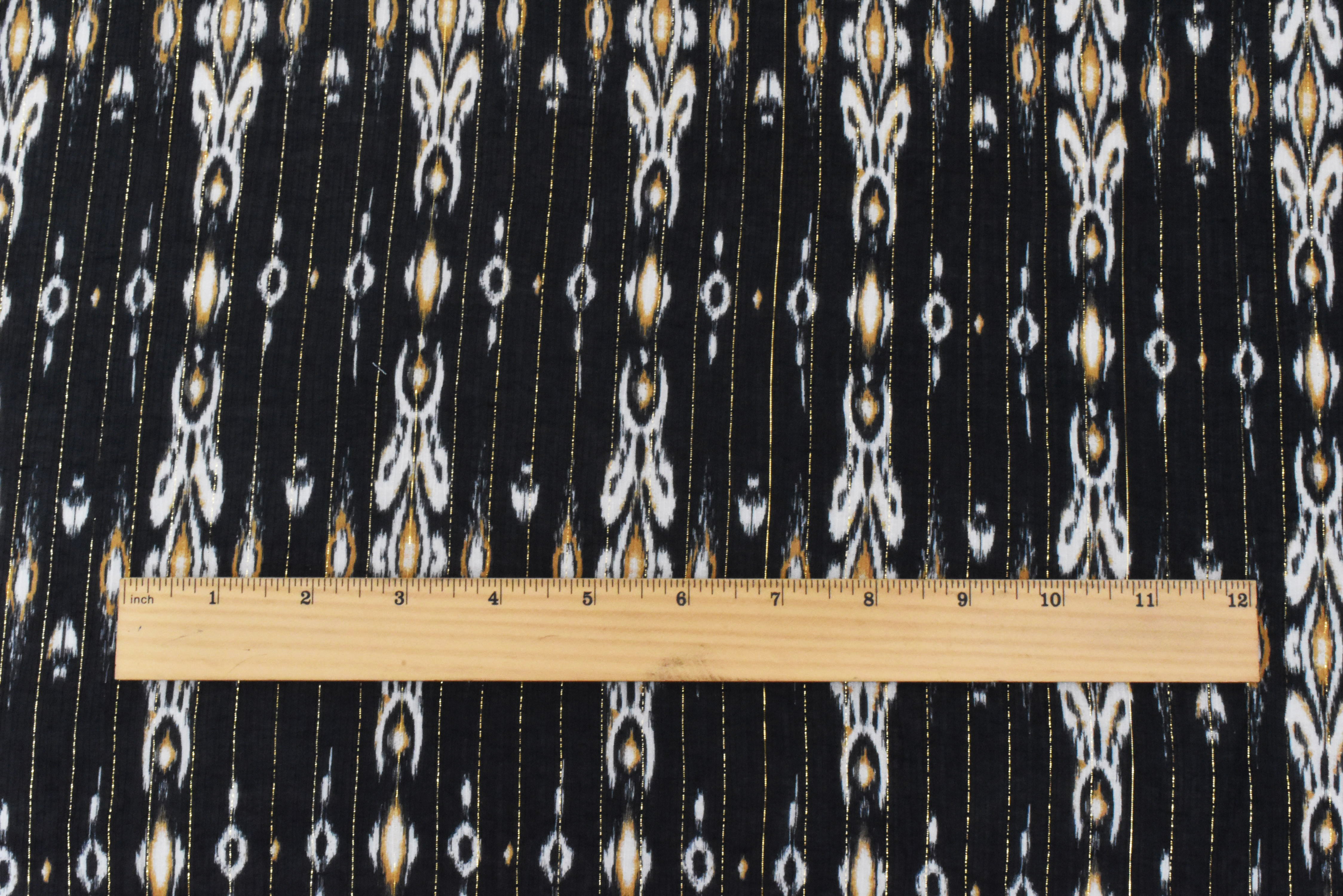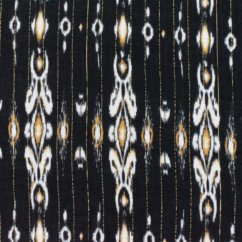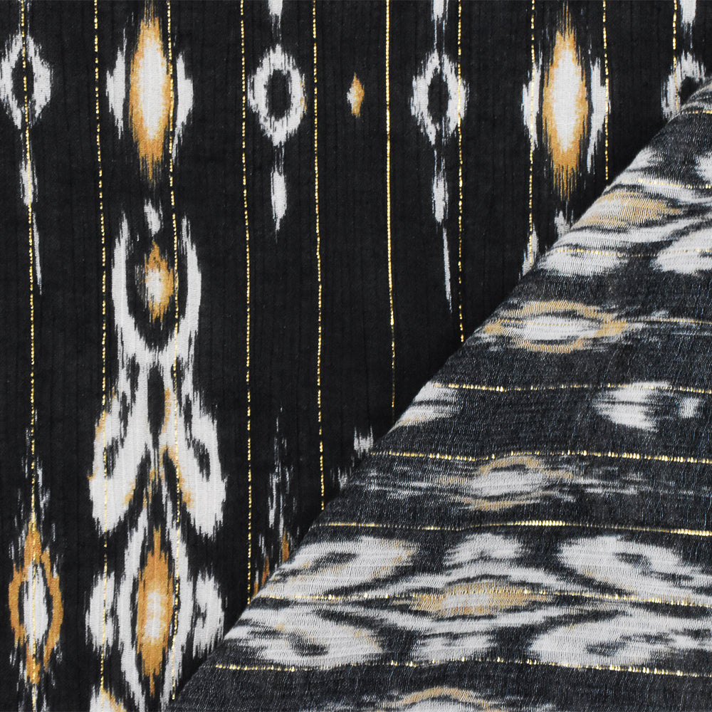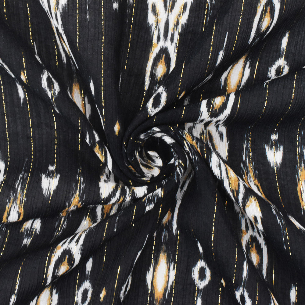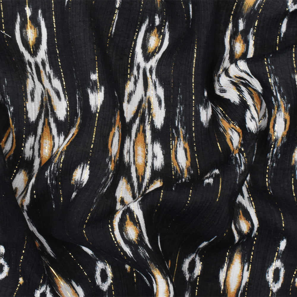 Black-Gold-Multi Famous Designer Viscose Silk Metallic Ikat Chiffon Fabric
