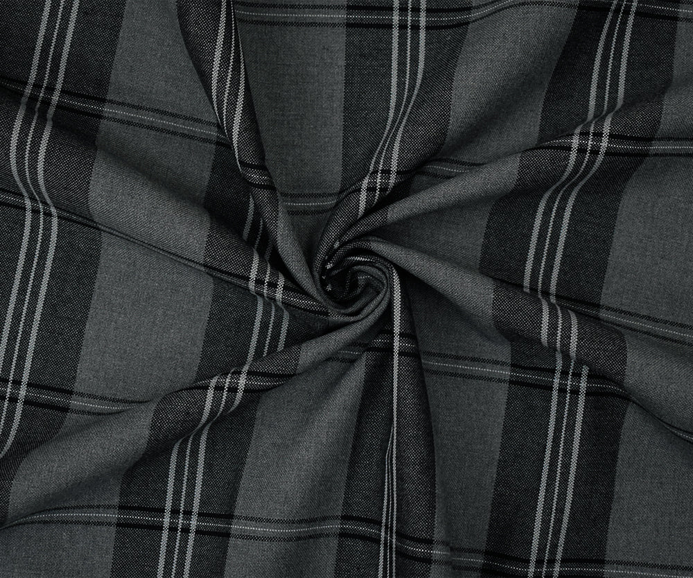 Black-Gray Polyester Wool Blend Plaid Shirting Woven Fabric