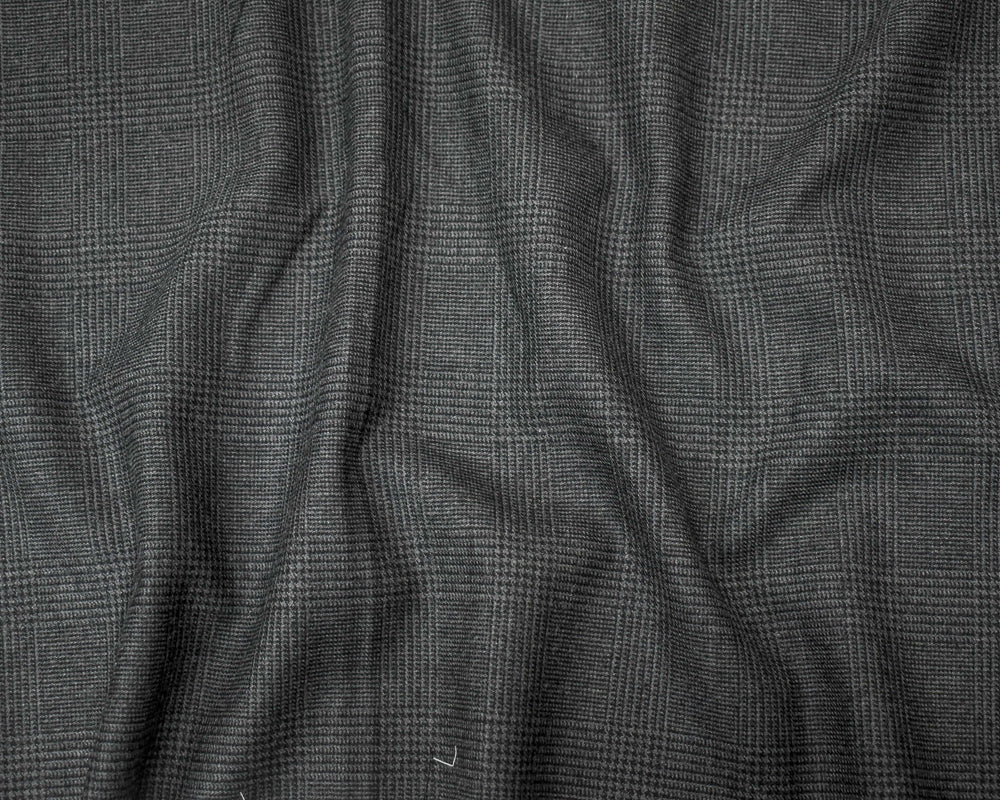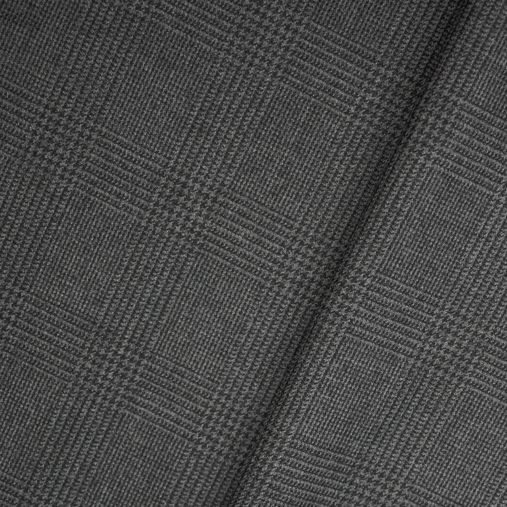 Black-Gray Wool-Polyester Glen Plaid Suiting Woven Fabric