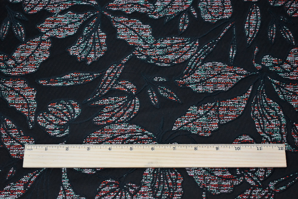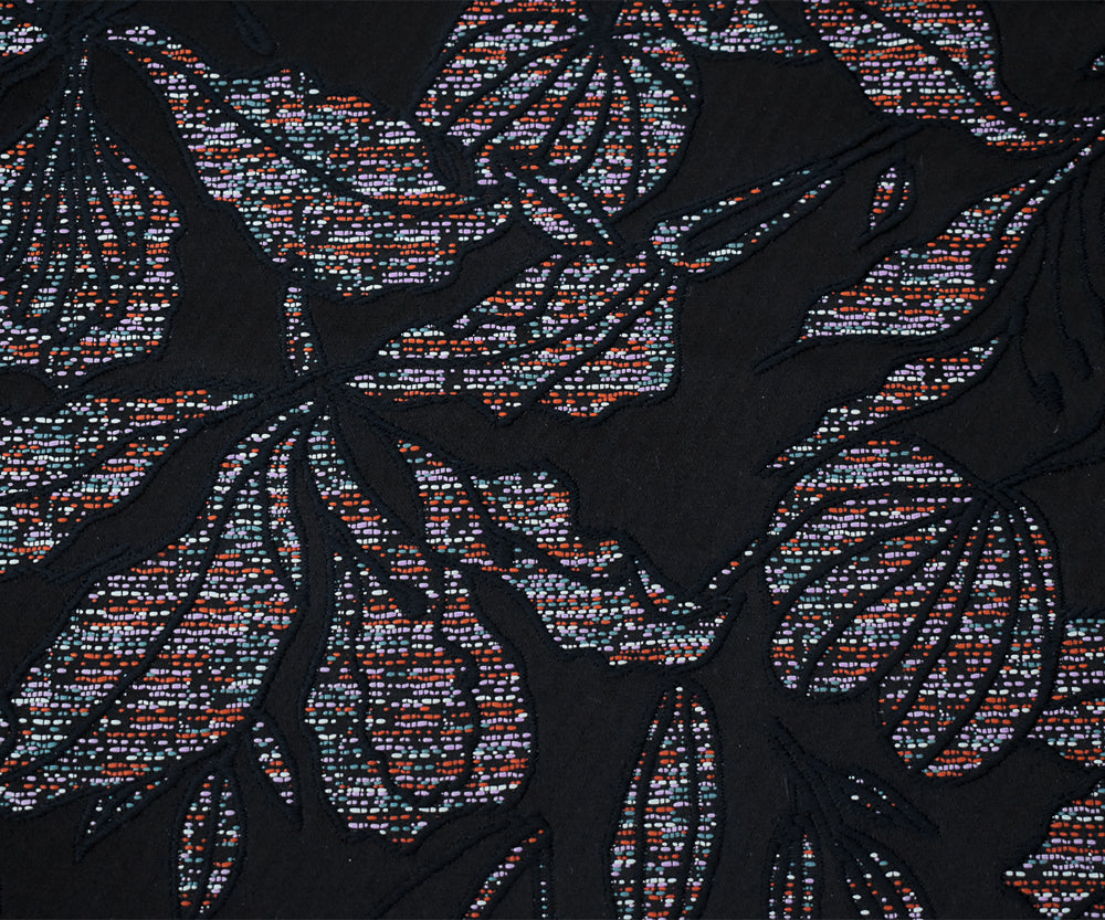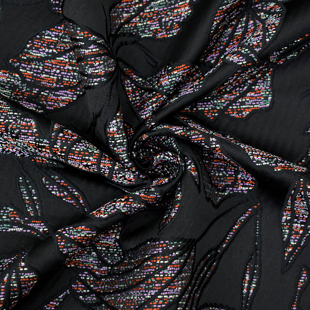 Black-Purple-Multi Polyester Leaves Jacquard Woven Fabric