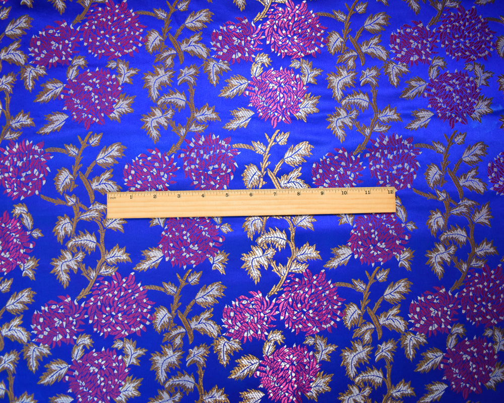 Blue-Fuchsia-Multi Polyester Abstract Floral Chinese Brocade Woven Fabric