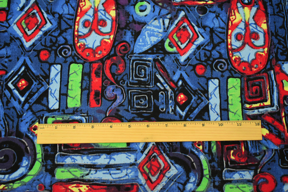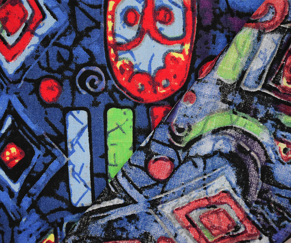 Blue-Red-Multi Abstract Geometry Art Pattern Printed Linen Woven Fabric