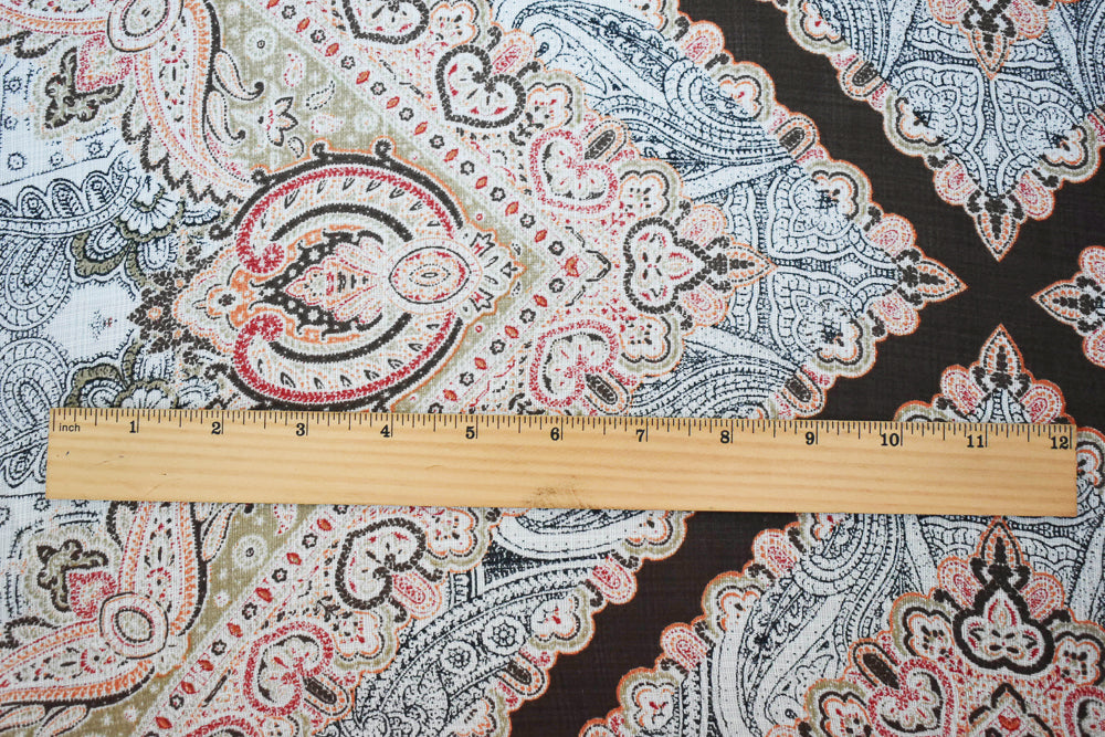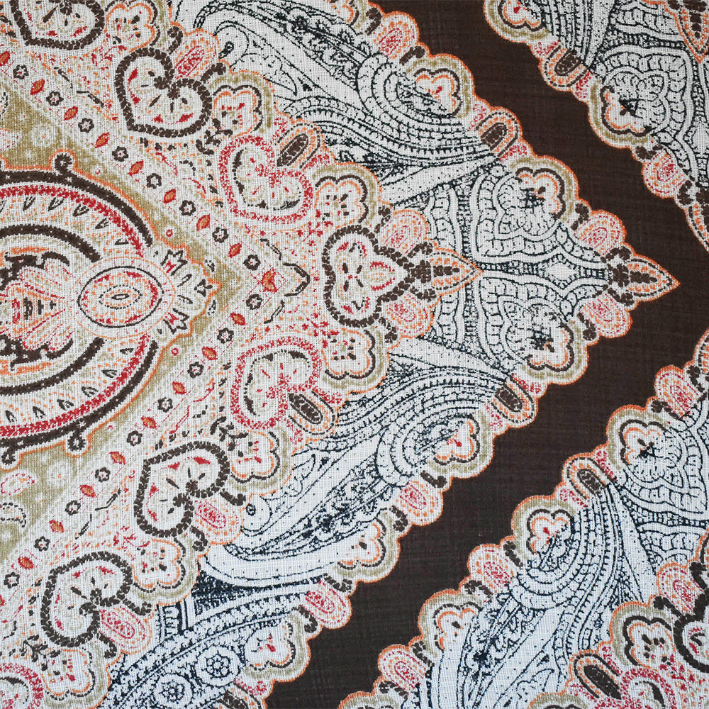 Brown-Orange-Multi Nylon Tile Baroque Printed Sheer Woven Fabric