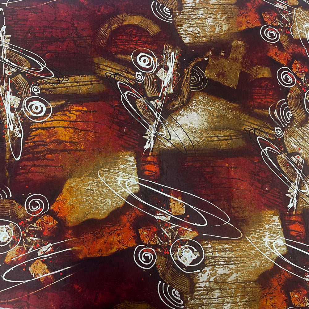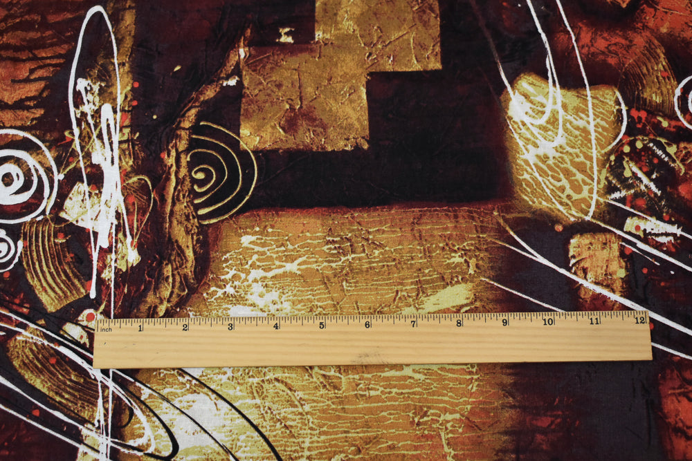 Brown-Yellow-Multi Abstract Art Printed Linen Woven Fabric