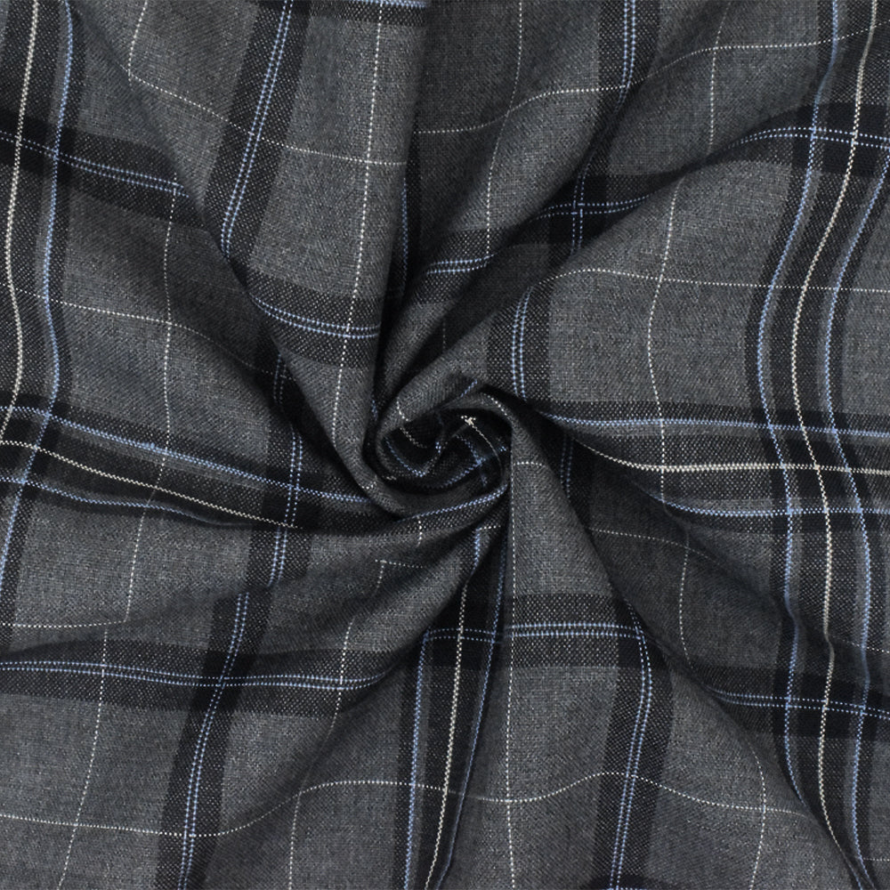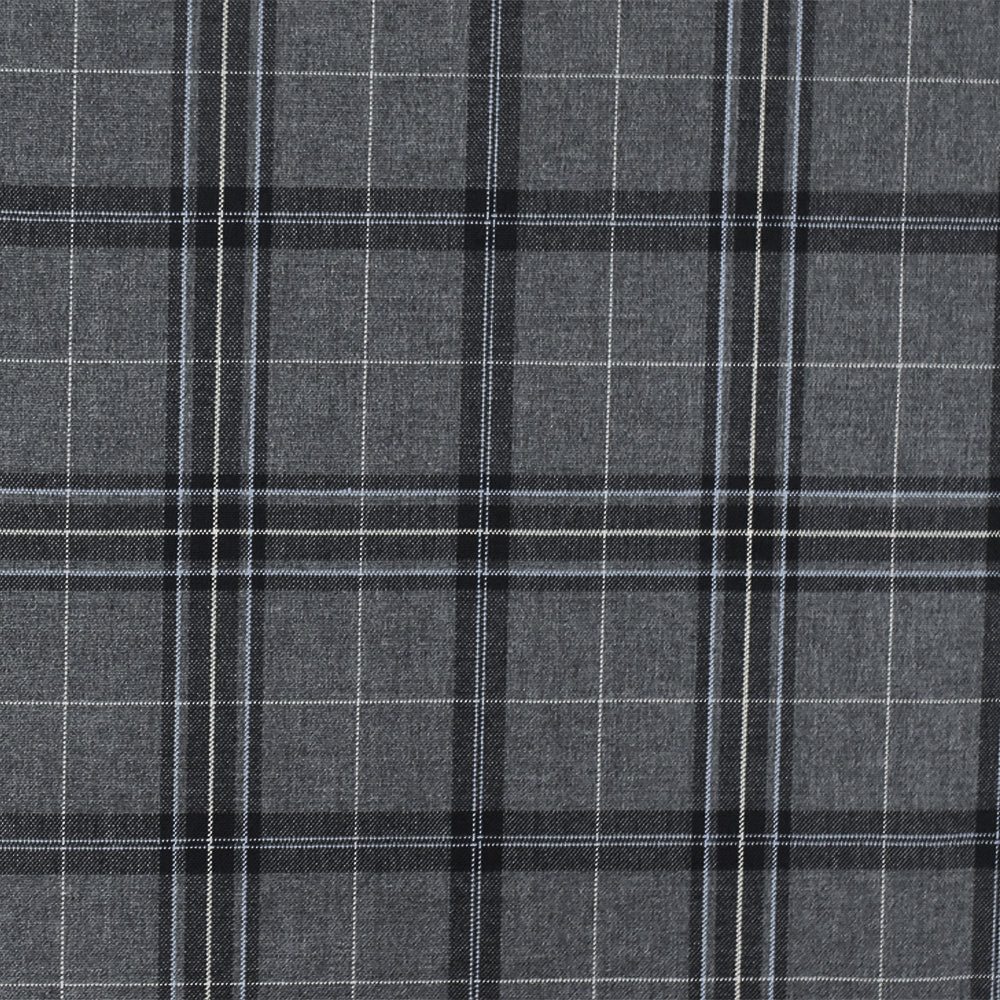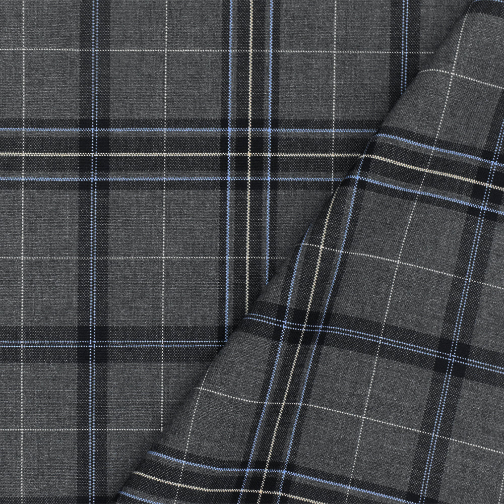 Cool Gray-Blue-Multi Plaid Wool-Poly Woven Suiting Fabric