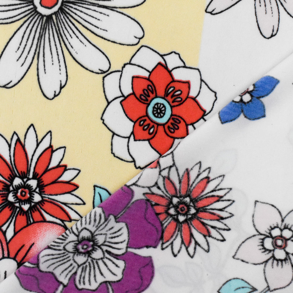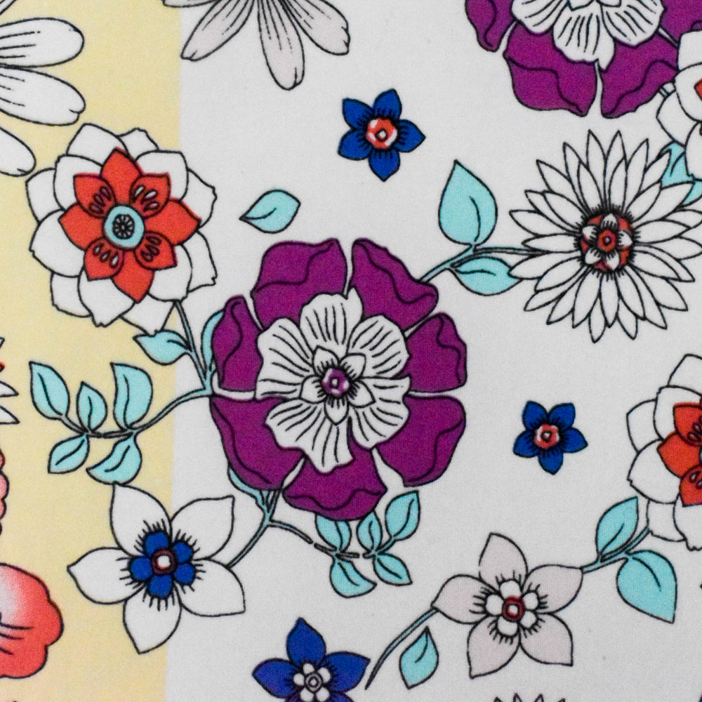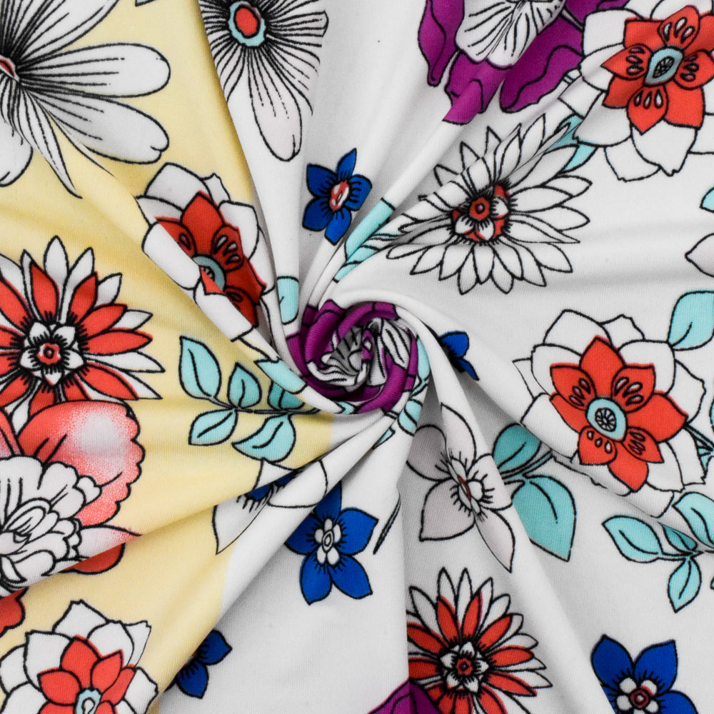 Cream Yellow-Teal-Multi Floral Stretch Poly Swimwear knit Fabric