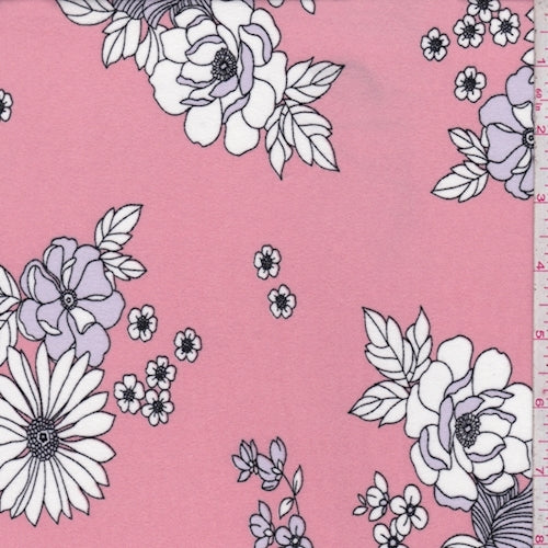 Creamy Pink Floral Double Brushed Jersey Knit Fabric