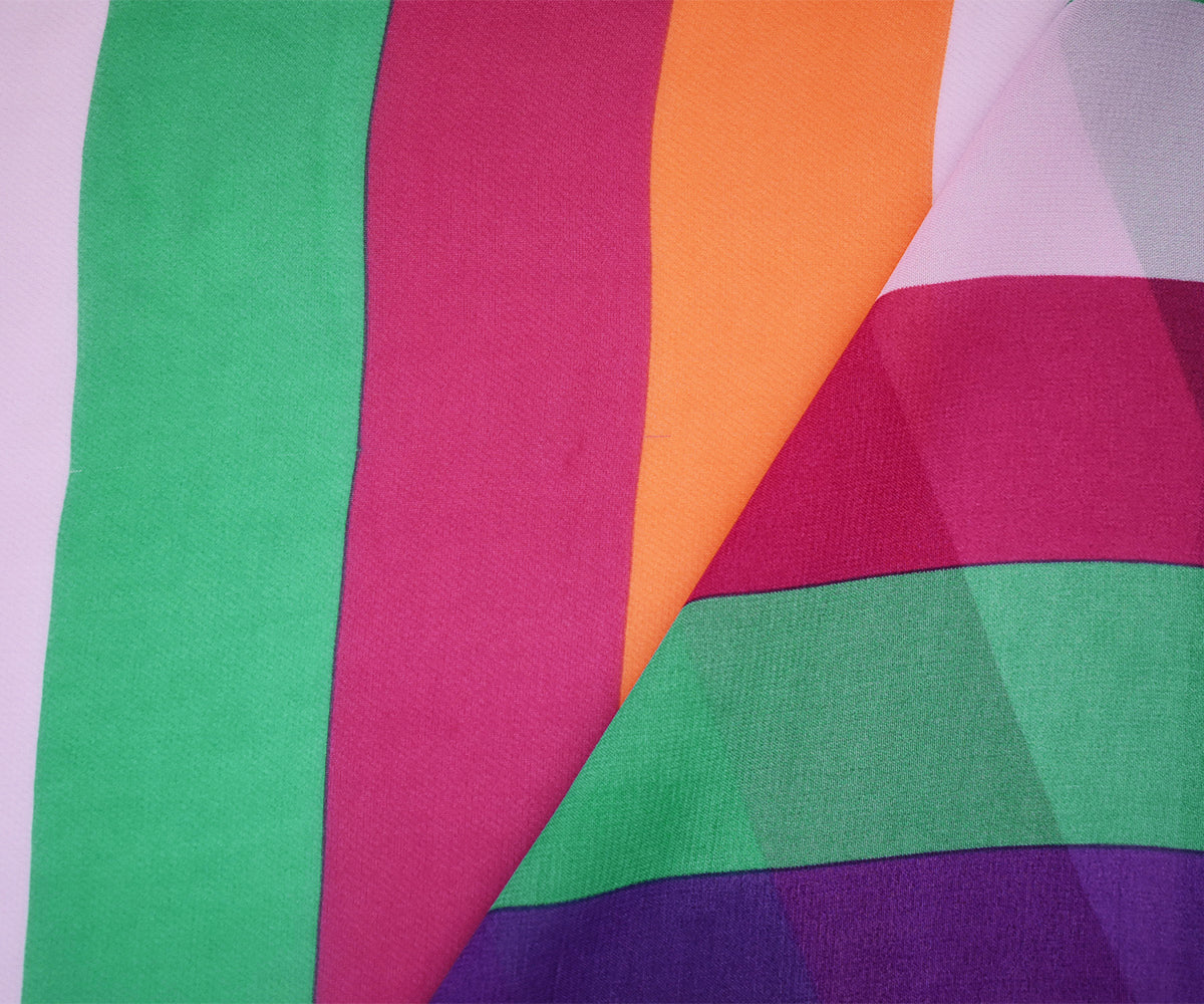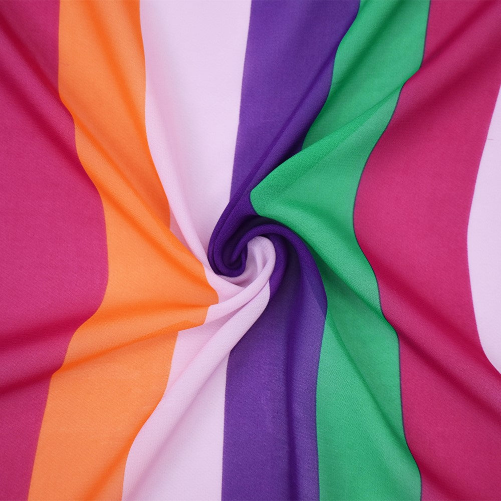 Deep Magenta-Green-Multi Nylon Stripe Printed Chiffon Woven Fabric