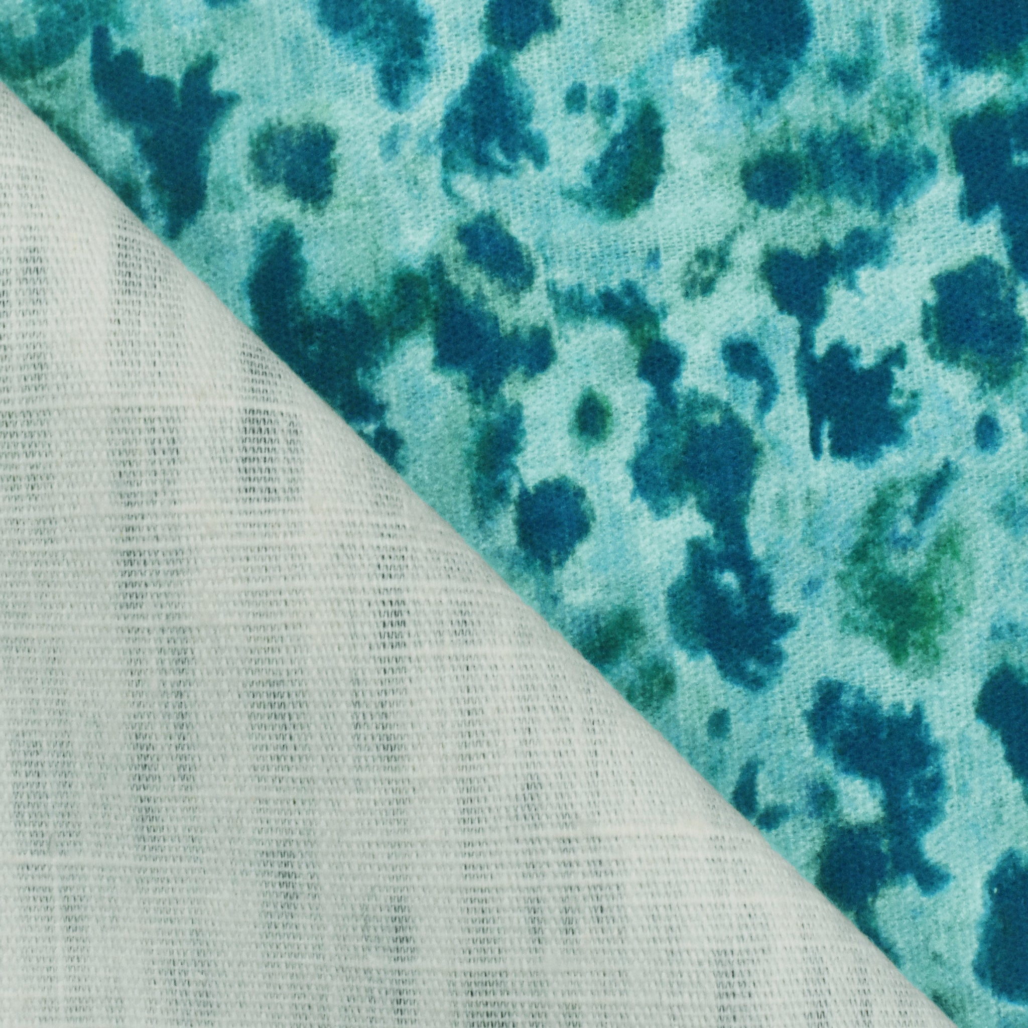 Deep Teal-Multi Watercolor Spots Printed Slub Decorating Fabric