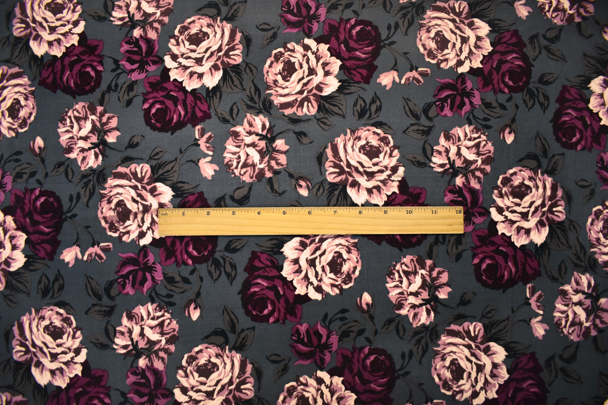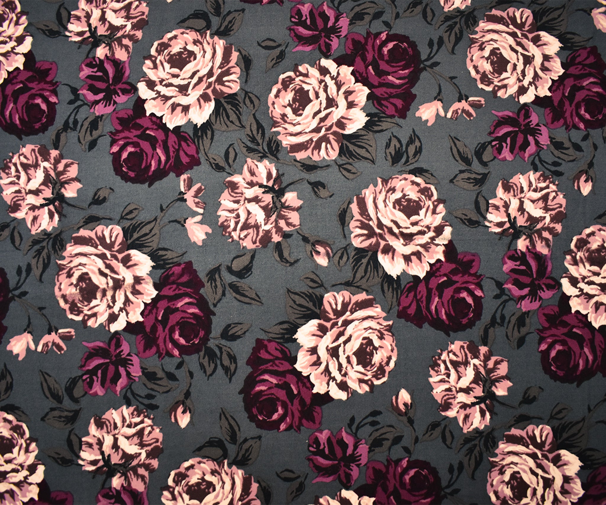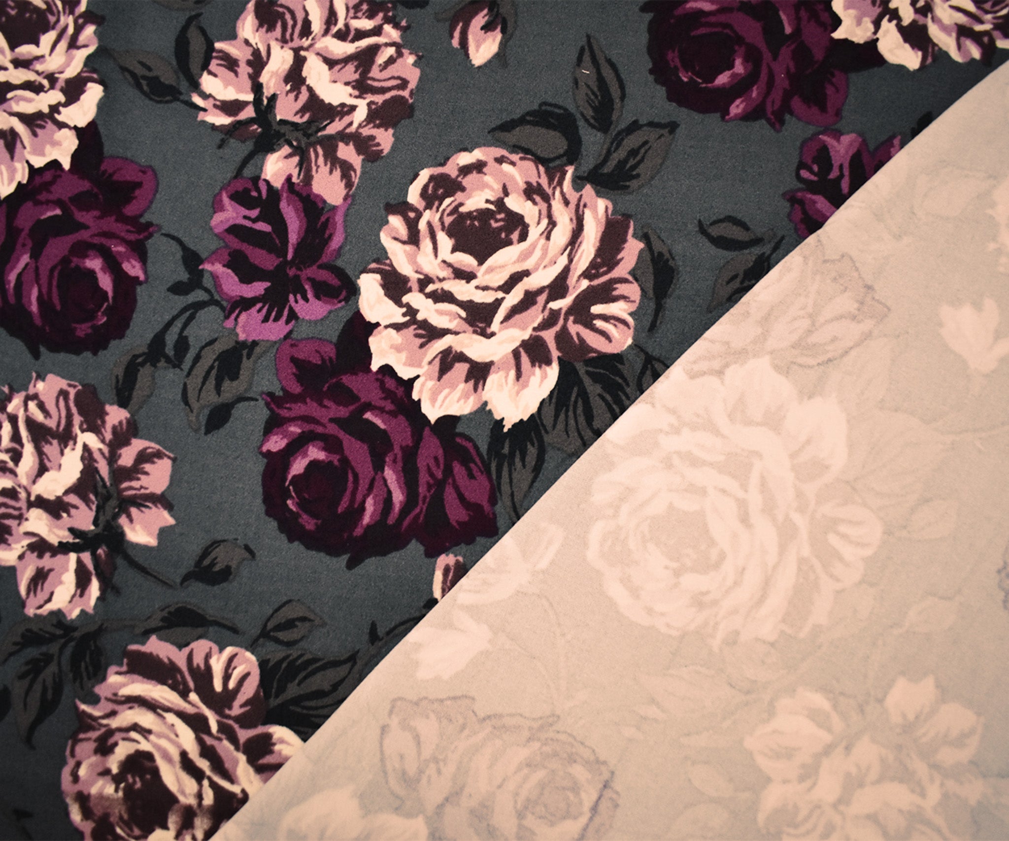 -This polyester-spandex double-side brushed jersey knit fabric features a soft floral print in an elegant gray and multi-color palette, with both sides brushed for an ultra-luxurious, plush feel. The four-way stretch construction provide exceptional comfort, flexibility, and a beautiful drape, ideal for flowy dresses, lounge sets, and cozy tops. Its breathable, velvety texture offers lightweight warmth while maintaining excellent shape retention for durable, comfortable wear.