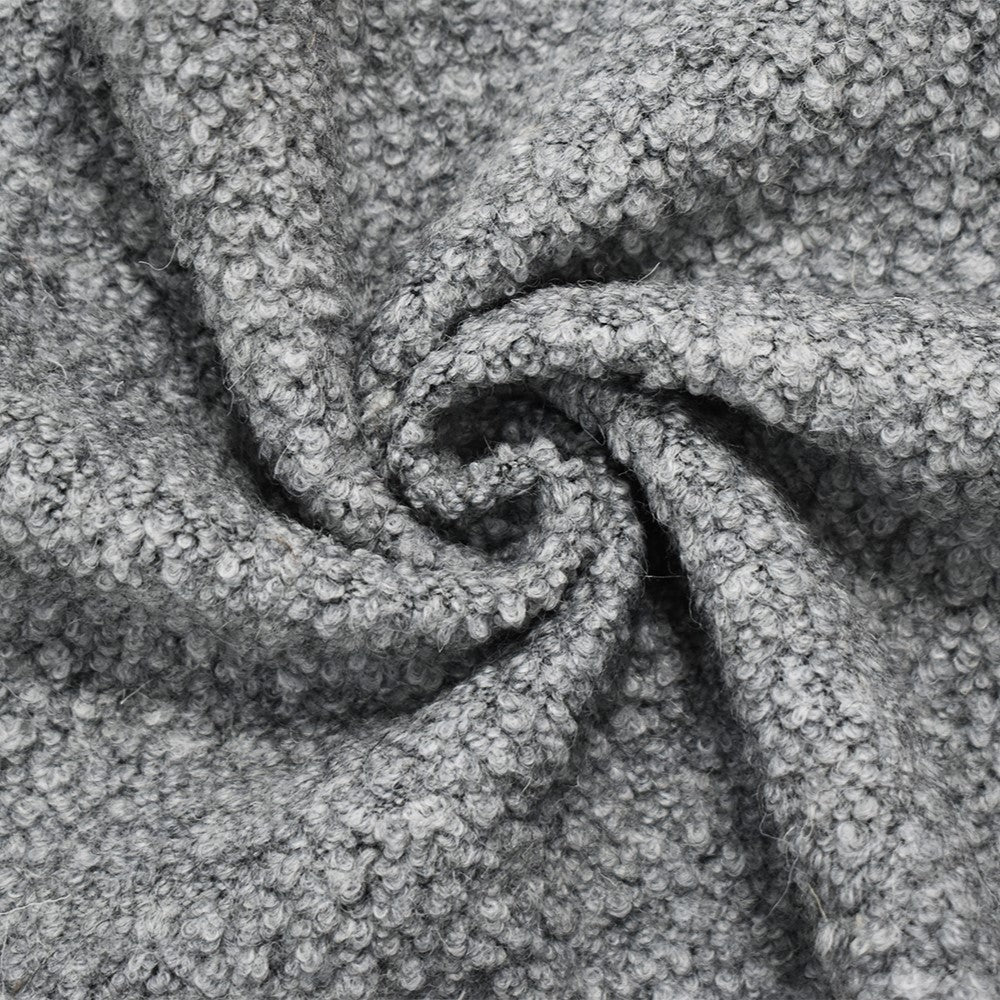 -270 gsm, wool and polyester blend textured boucle knit fabric