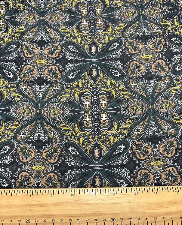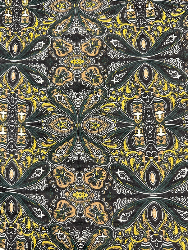 Green and Maize Multi Print Poly Georgette Fabric