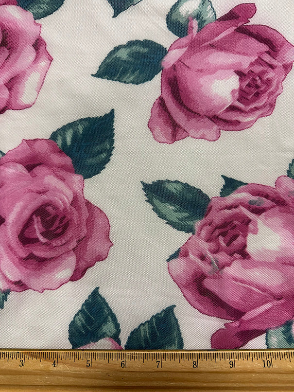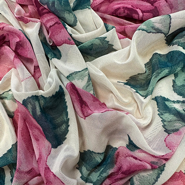 Ivory Multi Floral Print Stretch Mesh Fabric