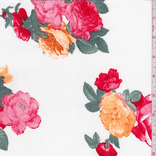Ivory Multi Rose Cluster Double Brushed Jersey Knit Fabric
