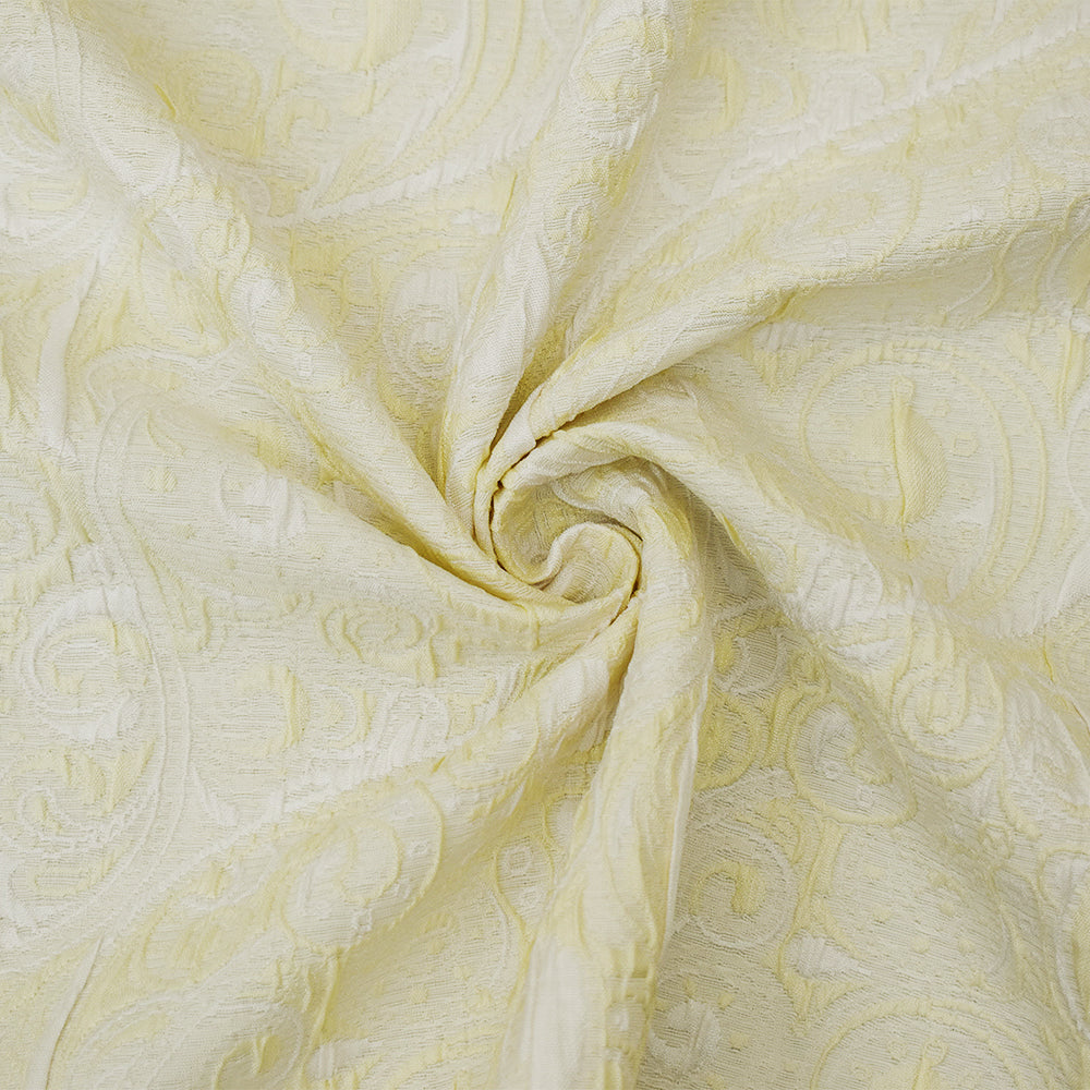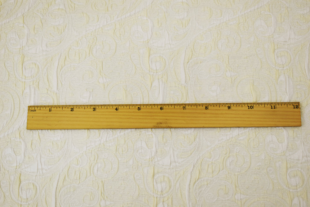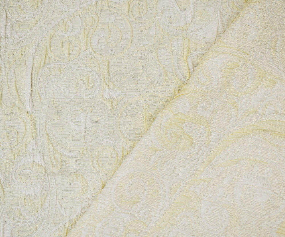 Ivory-White Polyester Fancy Scroll Pattern Matelasse Jacquard Fabric