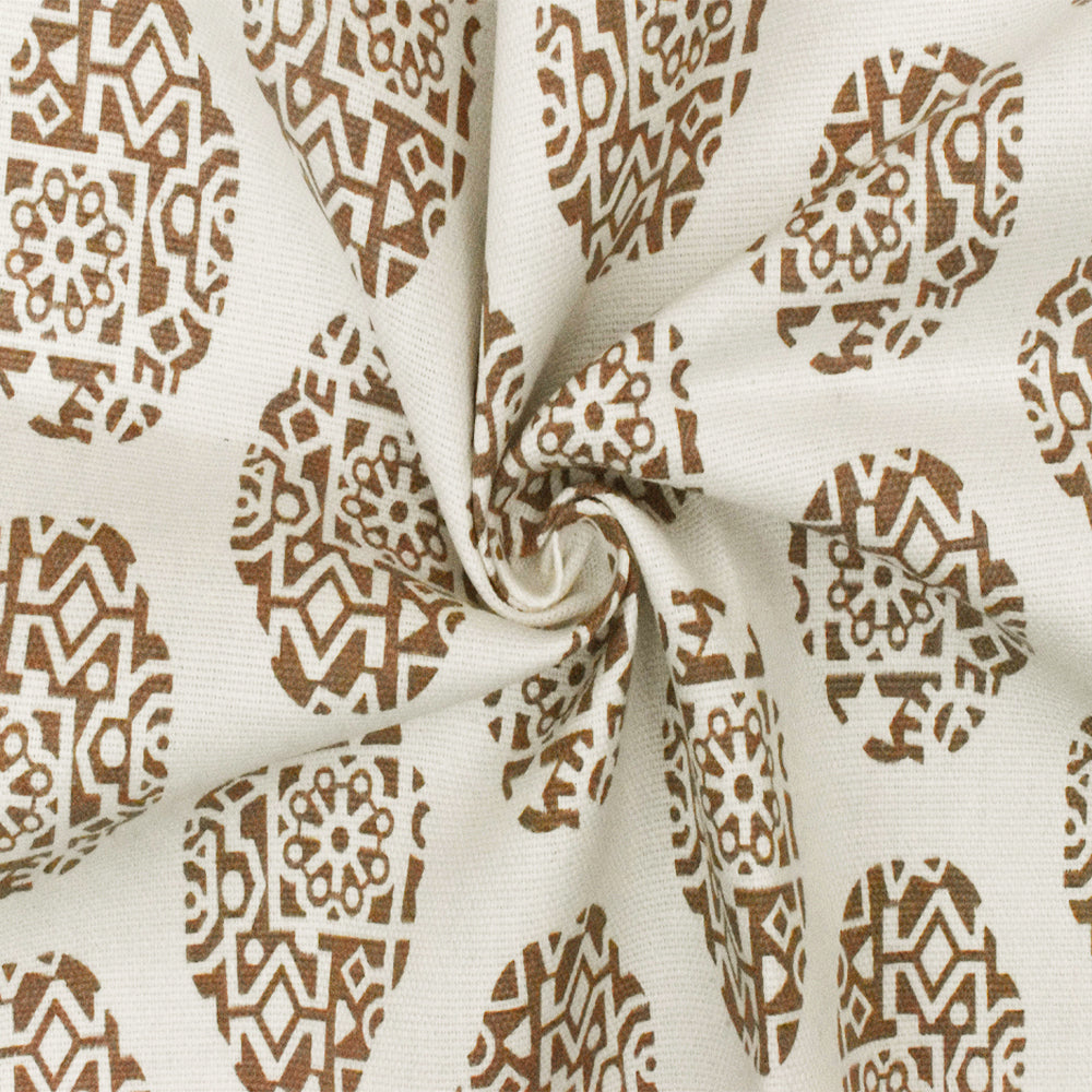Light Ivory-Brown Ukrainian Oval Printed Cotton Basket Canvas Woven Fabric