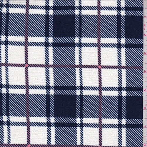 Navy/White/Pink Plaid Crinkled Crepe Fabric