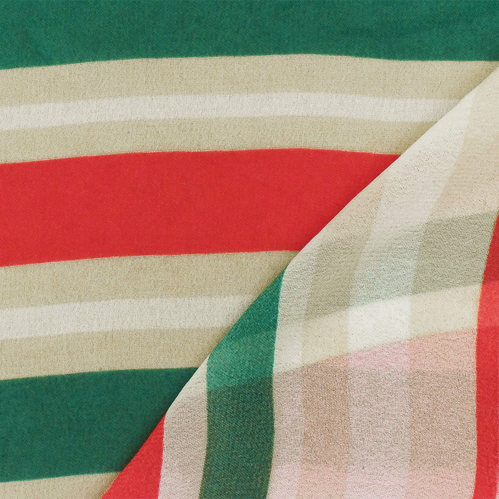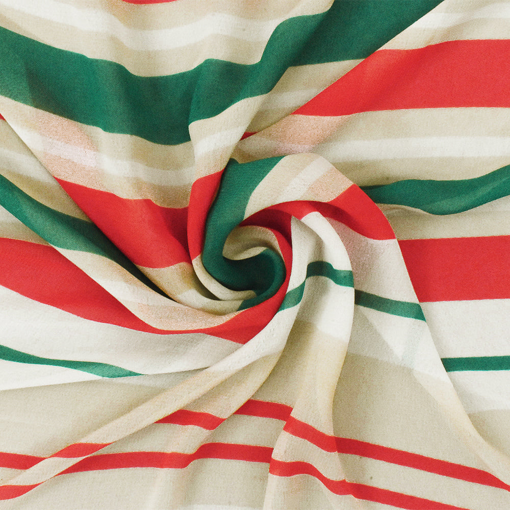 Orange-Beige-Multi Stripe Printed Poly Chiffon Woven Fabric