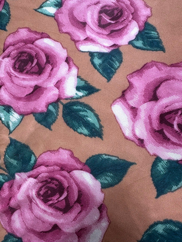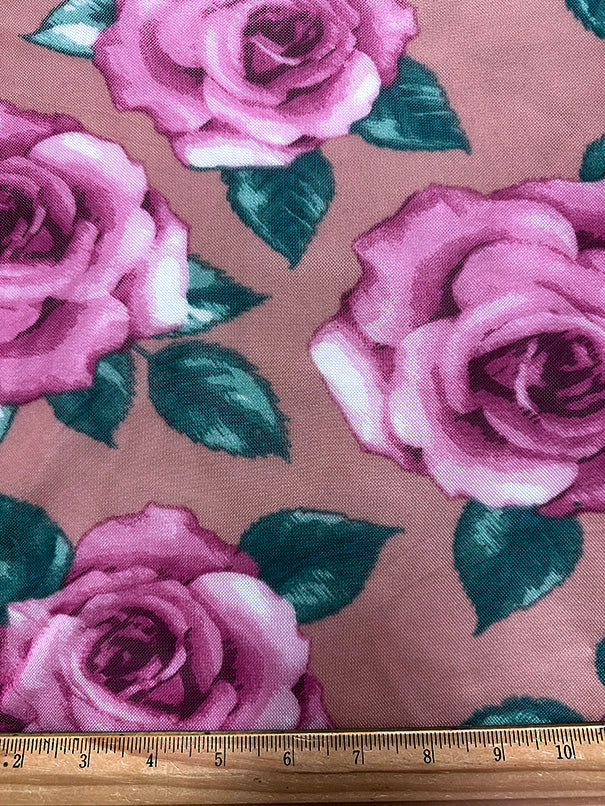 -Pink, White, Green, & Red Multi Floral Print on Pale Orange Stretch Mesh Fabric