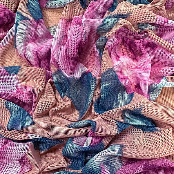 Pale Orange Multi Floral Print Stretch Mesh Fabric