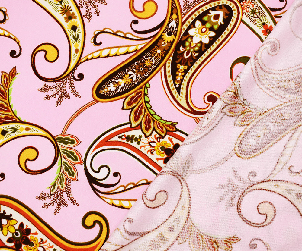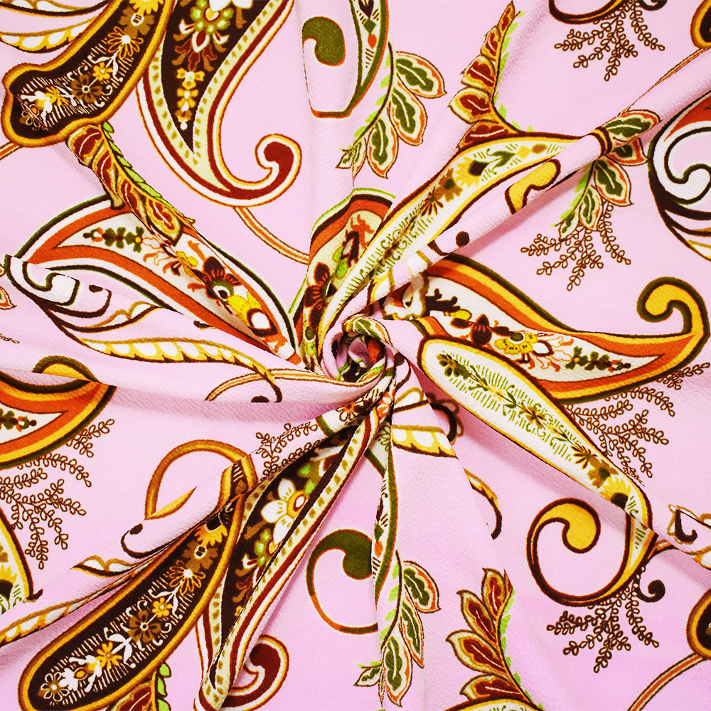Pink-Multi Poly Paisley Print Stretch Spandex Liverpool Double Knit Fabric