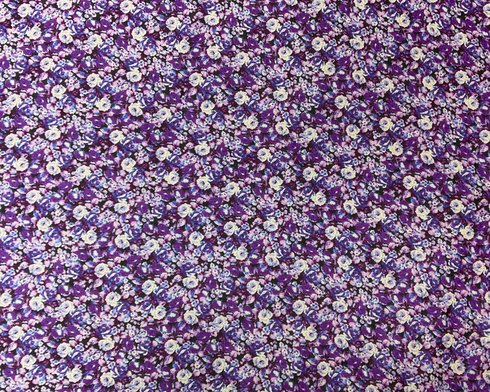 Purple-Black-Multi Poly Floral Printed Dobby Chiffon Woven Fabric