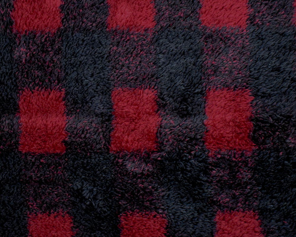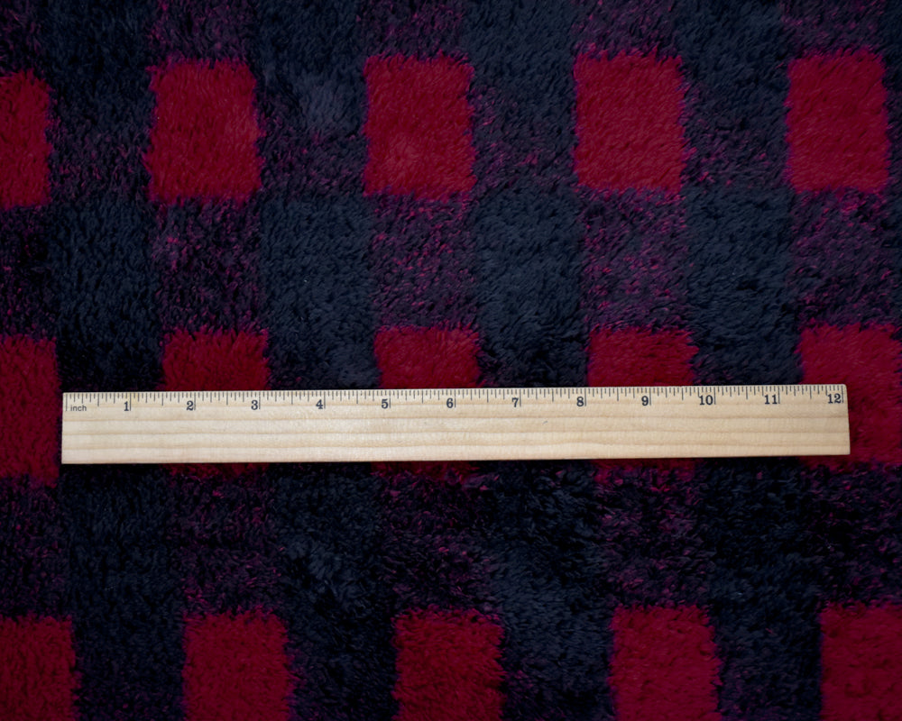 -100% Polyester plaid check pattern shaggy double sided fleece knit fabric. Made in Japan.