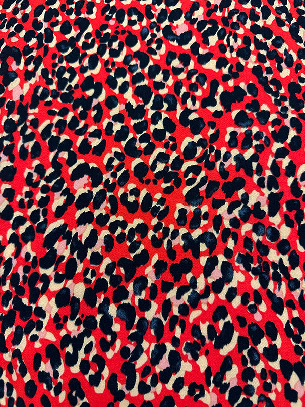 Red Multi Cheetah Animal Print Poly Georgette Fabric