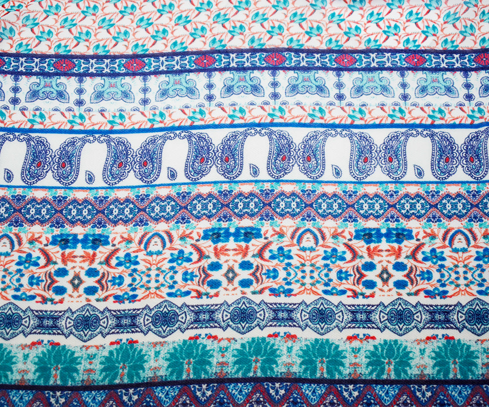 Tuquoise-Orange-Multi Multi Pattern Printed Chiffon Woven Fabric