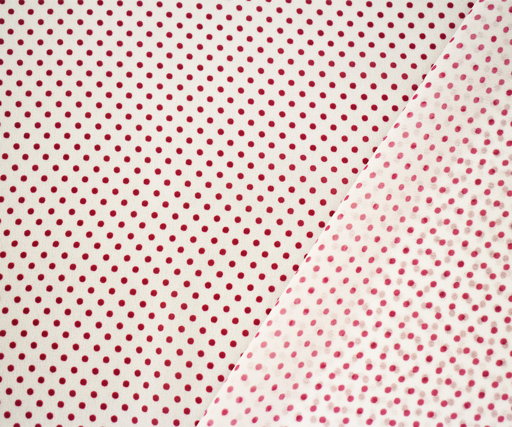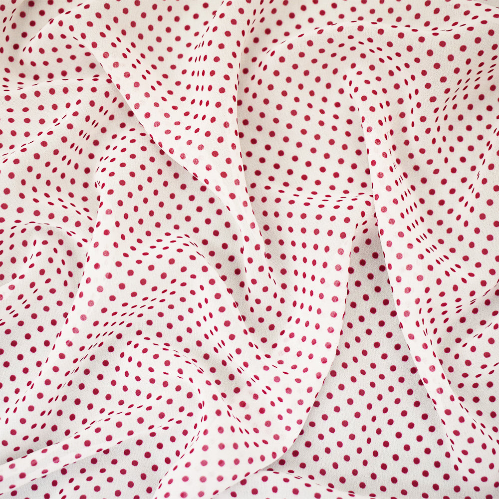 White-Red Polka Dots Printed Poly Chiffon Woven Fabric