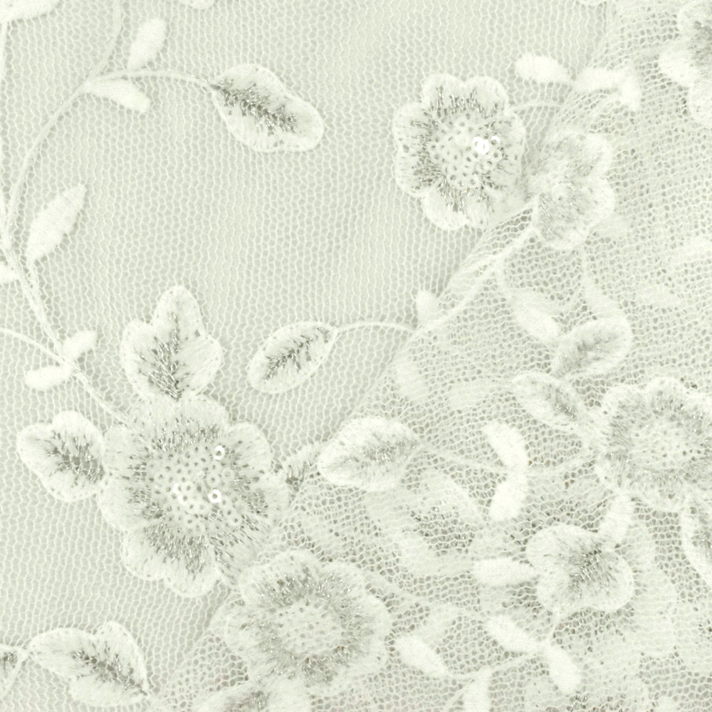 White-Silver Floral Metallic Sequin Embroidered Mesh Fabric