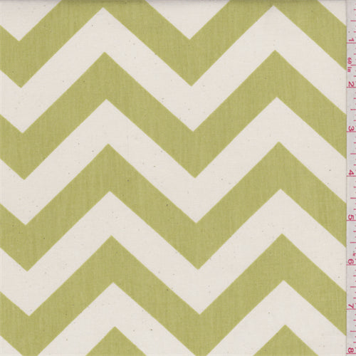 "Zig Zag" print by Premier Prints. A chartreuse green and ivory horizontal chevron print. This lightweight 7 oz cotton poplin has a smooth surface and crisp hand.